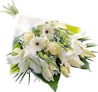 Lilyum beyaz gül ve gerberalardan oluşan özel buket
